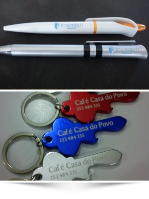 Divulgue a sua empresa de uma forma criativa com os nossos Brindes Publicitários (Canetas, Bonés, T-shirt's, Isqueiros, Tapetes de Rato, Canecas, Pen-Drives, Agendas, Calendários, etc...)